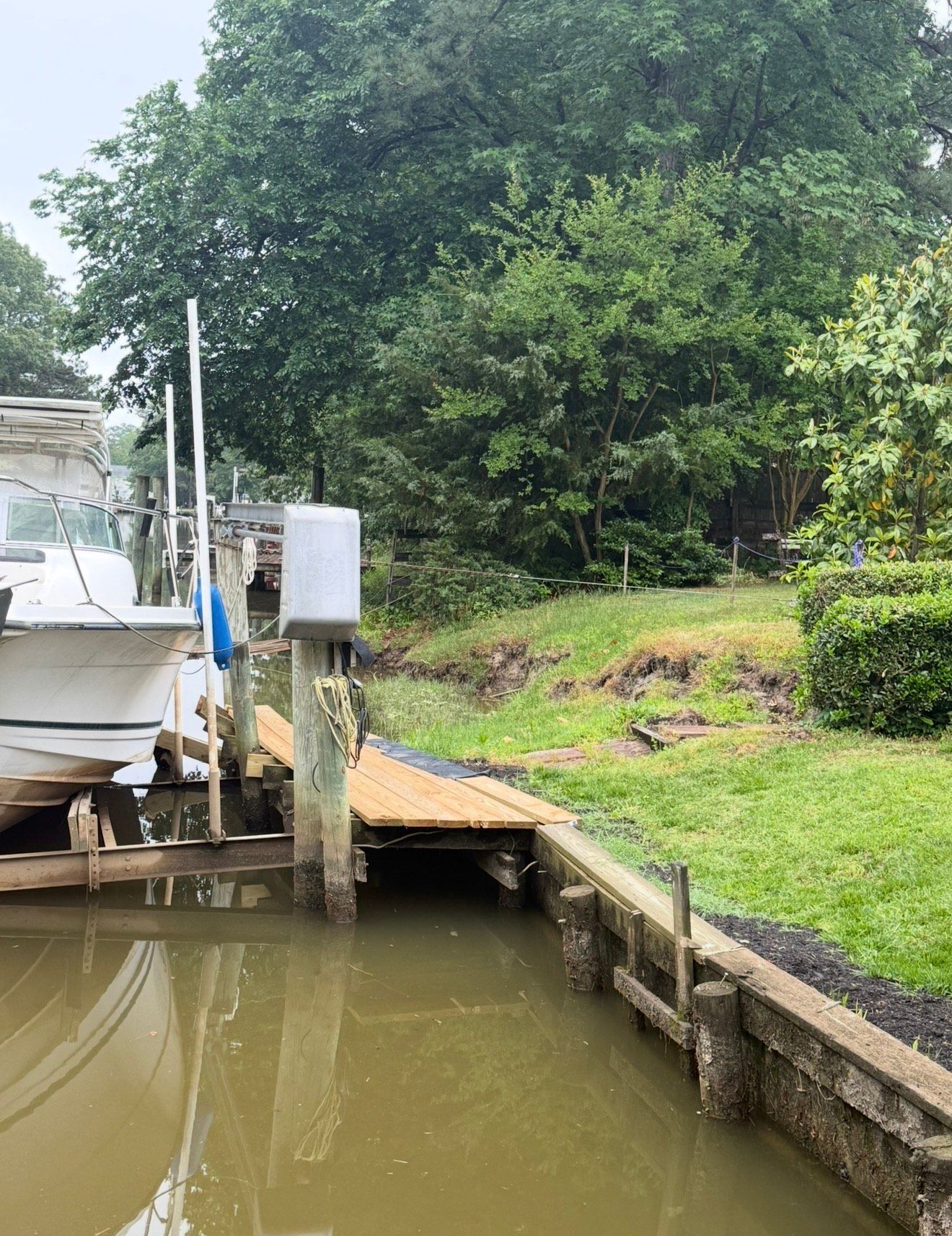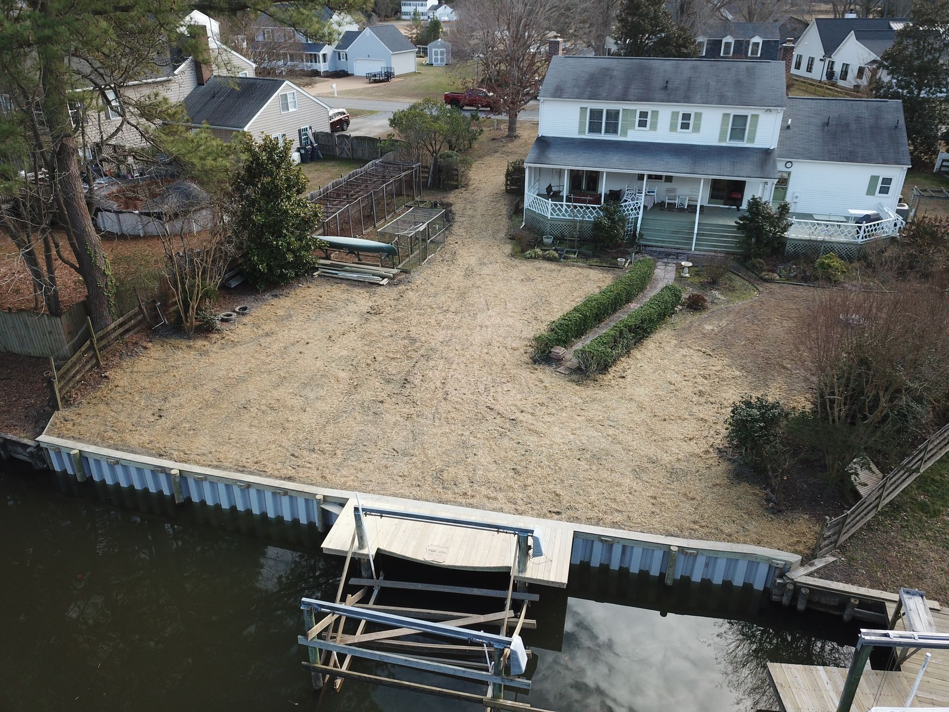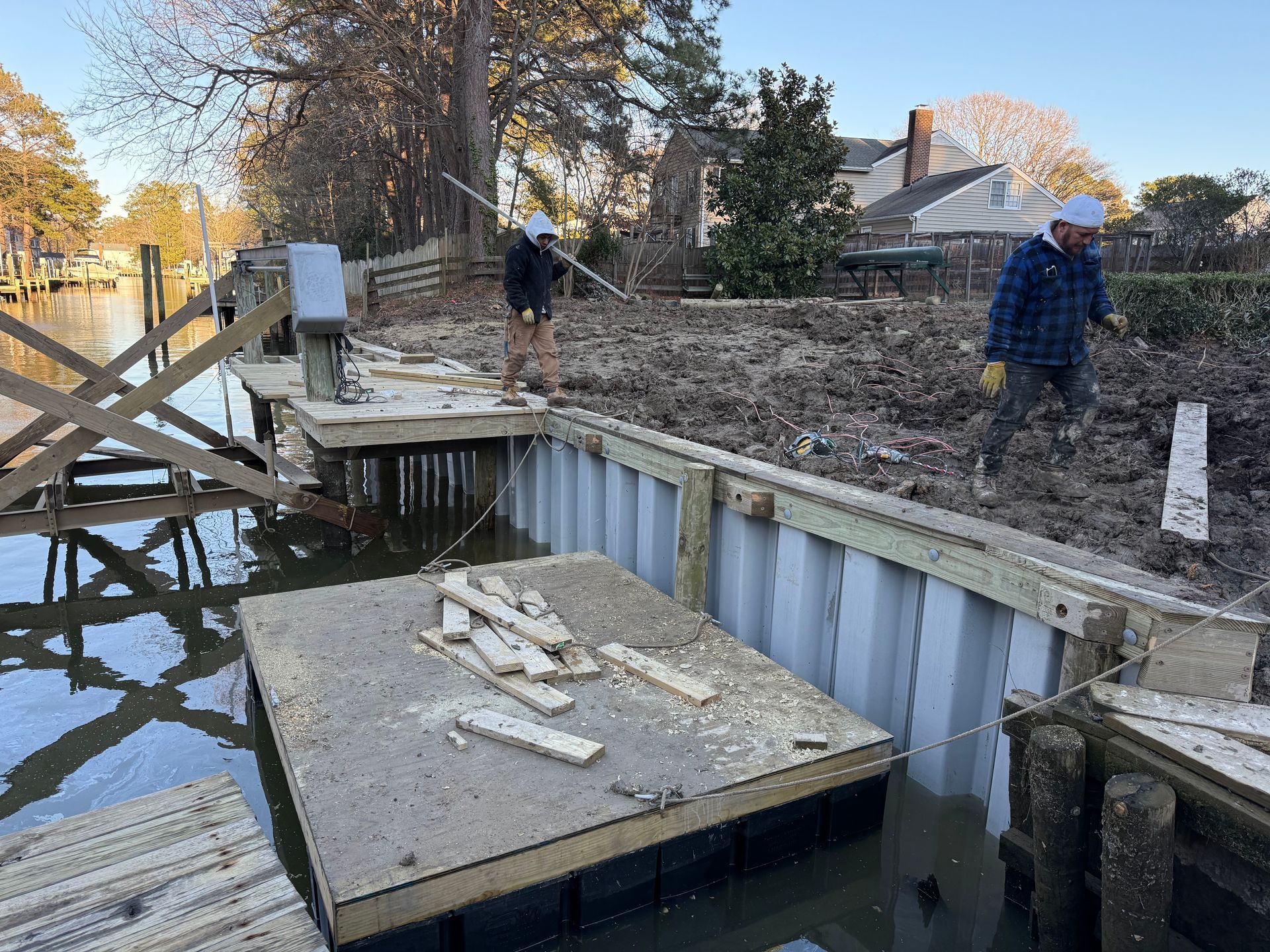 Customer called with a failed bulkhead NAMO LLC came in and demolished the old bulkhead and installed a new vinyl bulkhead and platform for customer. Customer gained all lost property back with new platform.